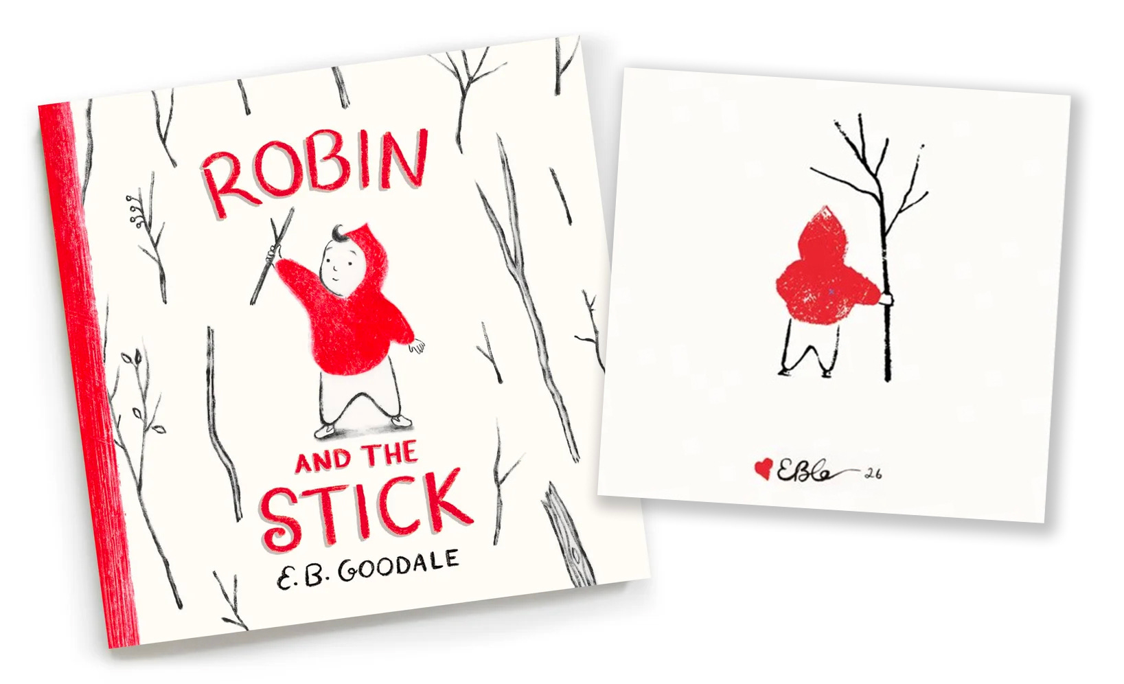 A reminder that if you preorder a copy of Robin and the Stick from Brookline Booksmith, not only can you have your book signed and personalized, but you will also receive a limited edition letterpress print. On shelves 4/14/26
